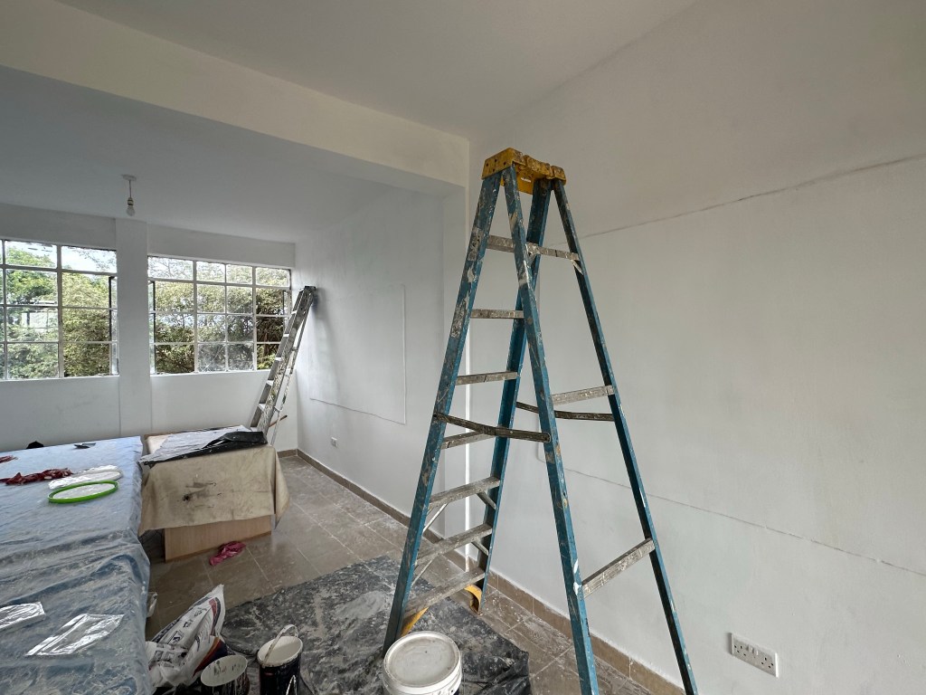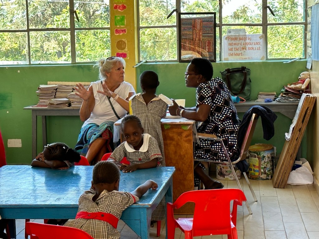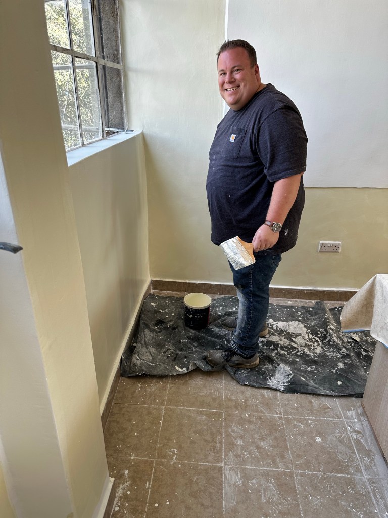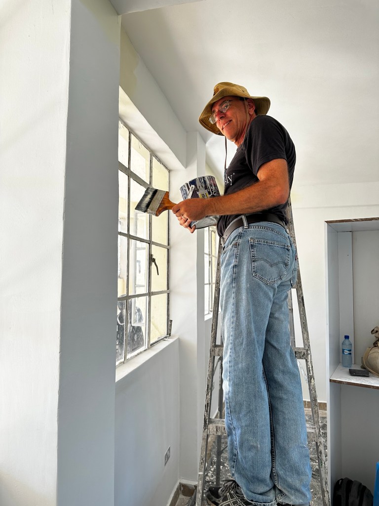 Once again, after lunch, the team continues with painting, Doug and Dan worked with the maintenance crew to repair some concrete and tiled steps, and Michelle went to a kindergarten classroom to discuss the first 2 special education students attending Point of Grace with their teacher.