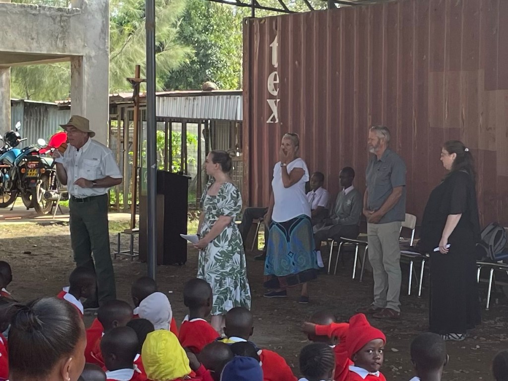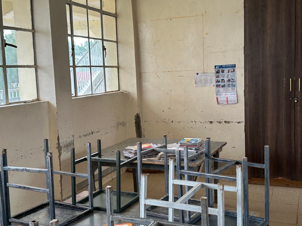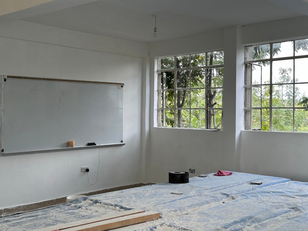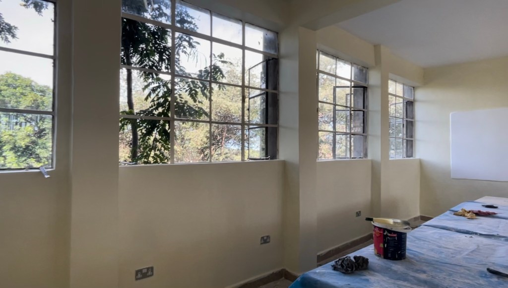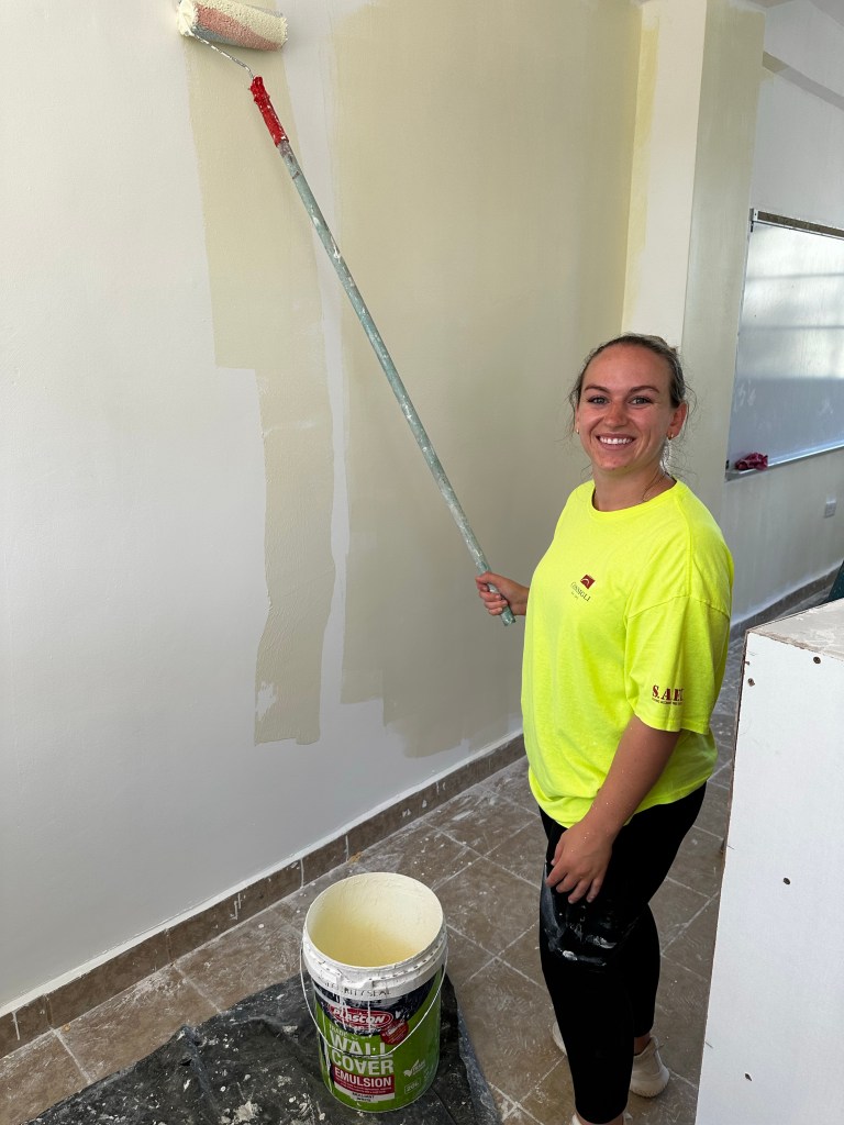 Once again, after lunch, the team continues with painting, Doug and Dan worked with the maintenance crew to repair some concrete and tiled steps, and Michelle went to a kindergarten classroom to discuss the first 2 special education students attending Point of Grace with their teacher.